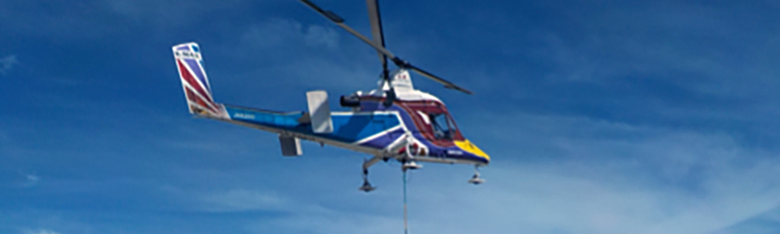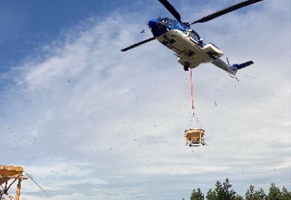 送電線鉄塔基礎工事や山岳地等のヘリコプターを使用する建設工事、及び山小屋や山岳工事へ物資輸送をする空輸業務に携わっています。